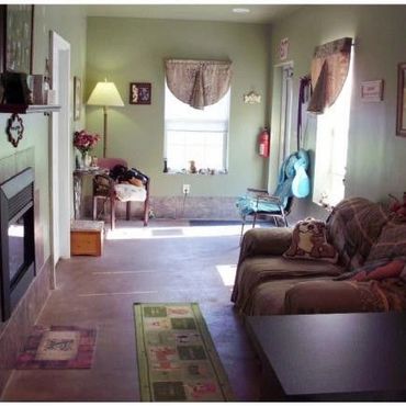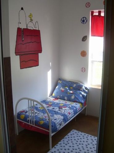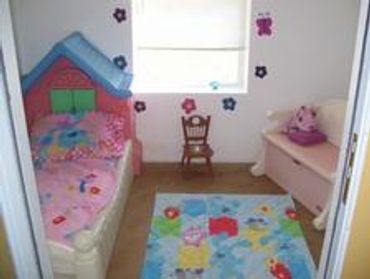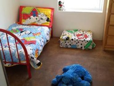 8 x 10 ft. Luxury suite, heated floors, toddler size bed with pillows & blanket.